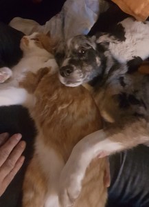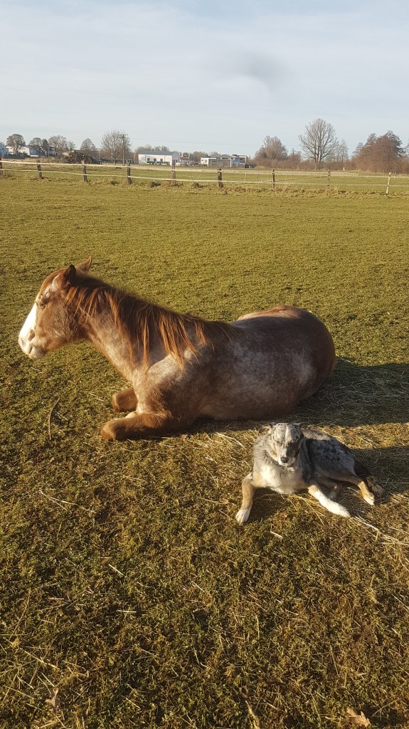 Jolene lässt sich beim Nickerchen liegend bekuscheln… und Shaddy bewacht sie – so süß!